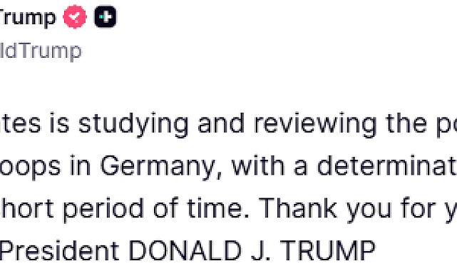 ABD Başkanı Donald Trump, Almanya'daki ABD askerlerinin sayısını azaltmayı düşündüklerini belirterek, "Bu konudaki kararın kısa süre içerisinde verilmesi bekleniyor" açıklamasında bulundu.Almanya Başbakanı Friedrich Merz'in ABD'ye İran konusunda yönelttiği eleştiriler gündemdeki tazeliğini korurken, ABD Başkanı Donald Trump'tan dikkat çeken bir açıklama geldi. Truth sosyal medya platformundan yayınladığı mesajda Almanya'daki ABD askerlerinin sayısını azaltmayı düşündüklerini belirten Trump, "ABD, Almanya'daki askeri birliklerinin sayısının azaltılması konusunu değerlendiriyor. Bu konudaki kararın kısa süre içerisinde verilmesi bekleniyor" ifadelerini kullandı.Merz'in eleştirileri Trump'ın tepkisine yol açmıştıAlmanya Başbakanı Friedrich Merz, pazartesi sabahı Kuzey Ren Vestfalya eyaletinde bir liseye yaptığı ziyarette öğrencilerin önünde, "ABD, İran yönetimi tarafından aşağılanıyor, küçük düşürülüyor" demişti. Merz, aynı günün akşamında ABD ve İsrail'in İran'a karşı eylemlerinden dolayı hayal kırıklığına uğradığını belirterek, "ABD ve İsrail en başından beri bu sorunun birkaç gün içinde çözüleceğini varsaydılar ve şimdi bunun olmadığını kabul etmek zorundayız. Bu yüzden Avrupalılar olarak diplomatik bir çözüm bulunmasına katkıda bulunmak istiyoruz" ifadelerini kullanmıştı. ABD Başkanı Donald Trump ise Merz'e sosyal medya hesabı üzerinden tepki göstererek, "Almanya Başbakanı Friedrich Merz, İran'ın nükleer silaha sahip olmasının sorun olmadığını düşünüyor. Ne hakkında konuştuğunu bilmiyor. Almanya'nın hem ekonomik hem de diğer açılardan bu kadar kötü durumda olmasına şaşmamalı" açıklamasında bulunmuştu.