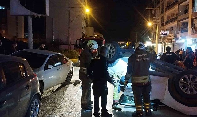 Hatay'da park halindeki 3 araca çarptıktan sonra takla atarak ters dönen otomobilin sürücüsü yaralandı.Kaza; Arsuz ilçesi Şarkonak Mahallesi Atatürk Caddesi üzerinde yaşandı. Sürücüsünün direksiyon hakimiyetini kaybettiği otomobil, park halindeki 3 araca çarparak takla attı. Takla atan otomobil ters dönerek durabildi. Kazada araç içerisinde sıkışan sürücü itfaiye ekipleri tarafından kurtarıldı. Yaralı sürücü hastanede tedavi altına alındı.Polis ekipleri kazayla ilgili inceleme başlattı.