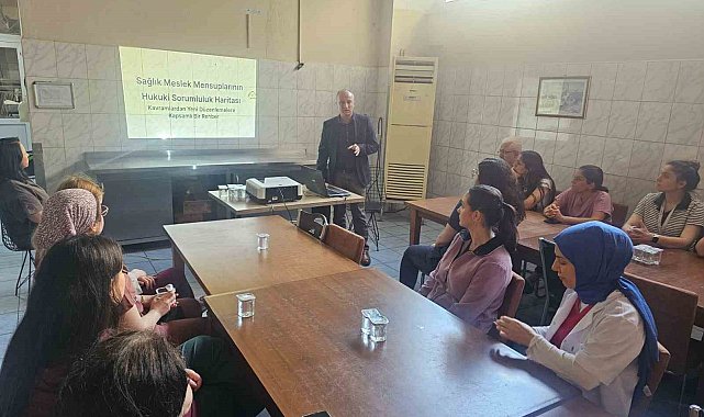 Aydın'da Atatürk Devlet Hastanesi bünyesinde görev yapan hekim ve sağlık personeline yönelik 'Mesleki Sorumluluk Kurulu ve Rücu İşleyişine İlişkin Eğitim' düzenlendi.Aydın İl Sağlık Müdürlüğü Hukuk ve Muhakemat biriminde görevli avukatlar ile Mesleki Sorumluluk Kurulu İl Koordinatörü tarafından verilen eğitimde, sağlık çalışanlarının mesleki sorumlulukları ve hukuki süreçlerde izlenecek yollar detaylı şekilde ele alındı. Eğitim kapsamında, özellikle rücu işleyişi, idari ve hukuki sorumluluklar ile sağlık çalışanlarının görevlerini yerine getirirken dikkat etmesi gereken hususlar hakkında bilgilendirme yapıldı. Katılımcılara, karşılaşılabilecek hukuki durumlarda izlenecek prosedürler örnekler üzerinden anlatıldı.Programın sonunda eğitime katkı sunan eğitmenlere ve katılım sağlayan sağlık çalışanlarına teşekkür edilirken, eğitimin sağlık hizmetlerinin daha bilinçli ve güvenli şekilde yürütülmesine katkı sağlamasının hedeflendiği belirtildi.