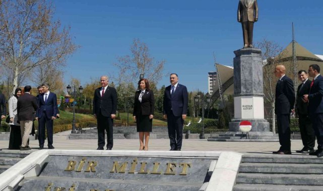 Azerbaycan'dan gelen Aile, Kadın ve Çocuklardan Sorumlu Devlet Komitesi Komitesi Başkanı Bahar Muradova ve beraberindeki heyet, Haydar Aliyev Parkı'nı ziyaret edip çelenk bıraktı.