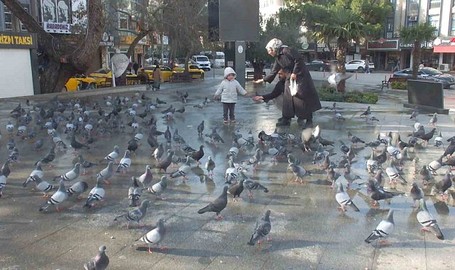 Burhaniye ilçesinde, yaklaşık 11 yıldan bu yana Cumhuriyet Meydanı güvercinlerin mekanı haline geldi. 59 yaşındaki İrfan Aşık'ın beslemeye başladığı güvercinlerin sayıları yüzleri bulurken, çok ayıda vatandaş da güvercinler için imece yapıyor.Burhaniye'de, İrfan Aşık, Cumhuriyet meydanındaki güvercinleri beslemeye başlarken, bir taraftan da onlar için bir iş yerinin çatısında yuvalar hazırladı. İrfan Aşık'ın yaklaşık 11 yıl önce 40 güvercin ile işe başladığı güvercin ailesi bu günlerde 500'ü geçti. Cumhuriyet Meydanına çocukları ile gelen vatandaşlar, güvercinleri beslerken, çocuklarda da hayvan sevgisi gelişiyor. Eşi ve çocuğu ile güvercinlere yem atan İbrahim Tekbaş, " Hanım ve çocukla beraber dışarıya çıktık. Baktık güvercinler aç. Allah'ın dilsiz kulları bunlar. Hem oğluma da hayan sevgisini aşılamak hem doğayı tanıtmak amacıyla geldik. Hayvanları biraz besledik. Bu kış aylarında insanların kapısının önüne biraz yem bırakmalarını isterim ve cani gönülden tavsiye ederim" dedi.