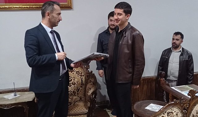 Erzurum İl Müftü Yardımcısı Dr. Sebahattin Erdoğan, şehrin manevi kalbi olan Daru'l Huffaz'ı ziyaret ederek hafızlık eğitimini tamamlayan ve devam eden öğrencilerle bir araya geldi.Ziyaret kapsamında, hafızlığını tamamlayan bir öğrenci belge takdim töreni düzenlendi. Genç hafıza Hafızlık Belgesi'ni bizzat takdim eden Dr. Sebahattin Erdoğan, hafızlığın sadece bir ezber değil, bir ömür boyu taşınacak mukaddes bir emanet olduğunu vurguladı.Öğrencilerle yakından ilgilenen ve onlarla hasbihal eden Erdoğan, konuşmasında şu ifadelere yer verdi: "Kur'an'ın muhafızları olan gençlerimiz, toplumumuzun manevi kandilleridir. Bu kutlu yolda emek veren hem talebelerimizi hem de onları yetiştiren hocalarımızı tebrik ediyorum."Törenin sonunda Dr. Sebahattin Erdoğan, hafızlığını tamamlayan öğrenci yanı sıra eğitimine devam eden diğer öğrencilere de motivasyon amacıyla çeşitli hediyeler takdim etti. Ziyaret, çekilen hatıra fotoğrafının ardından sona erdi.
