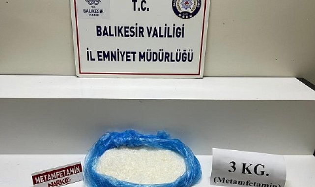 BALIKESİR'in Edremit ilçesinde, polis ekipleri tarafından gerçekleştirilen operasyonda 3 kilogram metamfetamin maddesi ele geçirildi.Balıkesir İl Emniyet Müdürlüğü ekipleri, uyuşturucu ile mücadele kapsamında, 2 şüphelinin adresine eş zamanlı operasyon gerçekleştirdi. Yapılan operasyonda 3 kilogram metamfetamin ele geçirilirken, 2 şüpheli gözaltına alındı.