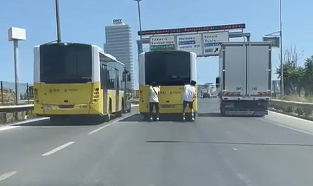 – KARTAL Köprüsü'nde seyir halinde olan İETT otobüsünün arkasına tutunarak ilerleyen patenli 2 genç tehlikeye davetiye çıkardı.İki genç trafikte hem kendi canlarını hiçe saydı hem de diğer sürücülerin hayatını tehlikeye attı. Gençlerin tehlikeli yolculuğu cep telefonu kamerasına yansıdı. Olay, 26 Haziran Perşembe günü öğle saatlerinde Kartal Köprüsü mevkiinde meydana geldi. Patenli 2 genç uzun süre seyir halindeki İETT otobüsünün arkasına tutunarak yolculuk yaptı. Kendi can güvenliklerini tehlikeye atan gençler, aynı zamanda trafikteki diğer sürücüler için de risk oluşturdu. Gençler orta şeritte ilerleyen otobüsün arkasına tutunarak ilerledikleri sırada yan şeritteki kamyon ve otobüse de aldırış etmedi. Otobüsün sağ şeride geçip durakta durmasıyla patenli gençler araçtan hızla uzaklaşarak gözden kayboldu. O anlar aynı yönde seyir halinde olan başka bir sürücünün cep telefonu kamerasına yansıdı.