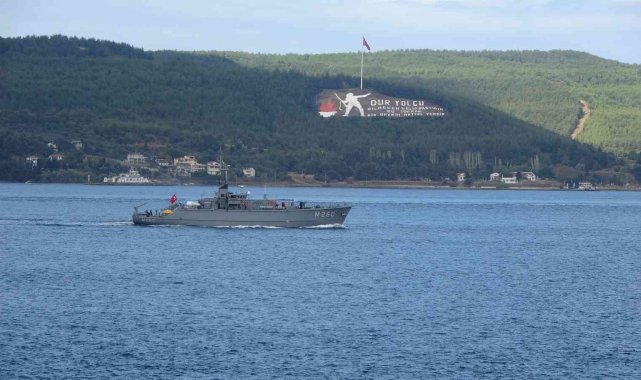 Ege Denizi’nden bugün saat 10.30 sıralarında Çanakkale Boğazı’na giriş yapan NATO üyesi; Türk Deniz Kuvvetleri’ne ait M-260 borda numaralı ‘TCG Edincik’, İspanya Deniz Kuvvetleri’ne ait P-42 borda numaralı ’Rayo’, İtalya Donanması’na ait 5559 borda numaralı ‘ITS Viareggio’ isimli savaş gemisi, İspanya Donamasına ait M-31 borda numaralı ‘ESPS Segura’ ve Yunanistan Donanması’na ait M-61 borda numaralı ‘HS Evropi’ isimli savaş gemileri saat 12.00 sıralarında Çanakkale önlerinde oldu.Kilitbahir Kalesi ve ‘Dur Yolcu’ sembolü önünden geçen savaş gemilerine boğazı geçişi sırasında Türk Sahil Güvenlik Botları eşlik etti. Nara Burnu açıklarında demirleyen NATO’ya bağlı savaş gemileri, 18-28 Ekim 2021 tarihleri arasında Çanakkale ve Saros Körfezi’nde icra edilecek Nusret-2021 Tatbikatına katılacak.