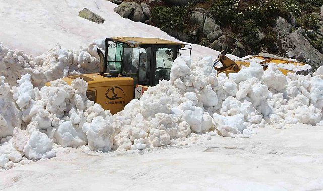 Rize'nin yüksek kesimlerinde kış mevsiminde düşen ve Haziran ayının sonuna gelinmesine rağmen henüz kalkmayan çığlar nedeniyle ulaşıma kapalı olan yollar teker teker açılıyor.Rize'nin yüksek rakımlı yaylarına kış mevsiminde yağan karların izleri henüz silinemedi. Ağır geçen kış şartlarınınım ardından şehrin yüksek kesiminde yağan kar Haziran ayının son haftasına girilmesine rağmen henüz erimedi. Havaların ısınması ile ise sertleşen kar yer yer çığlara da neden olmaya başladı. Düşen çığlar nedeniyle ulaşıma kapanan yayla yolları ise Rize İl Özel İdaresi ekipleri tarafından açılmaya devam ediyor. Yaz mevsiminin gelmesiyle hayvanlarını yaylaya çıkaracak olan yaylacıların mağduriyet yaşamaması için çalışmalarına hız kesmeden devam eden Rize İl Özel İdaresi ekipleri sırayla yayla yollarını yeniden ulaşıma açıyor.Sadece yollar değil evler de çığ altında kaldıRize'nin Ardeşen ilçesine bağlı ilçe merkezine 55 kilometre uzaklıktaki Balıklı Yaylası'nda düşen çığ nedeniyle yol ulaşıma kapandı. Ekipler yaylacıların mağduriyet yaşamaması için harekete geçerek ulaşıma kapalı yolu yeniden açmak için kar temizliğine başladı. Yaylaya düşen çığ sadece yolu ulaşıma değil yayla evlerini de kapattı. Çığ nedeniyle 2546 rakımdaki yaylada bulunan evler karın içine gömüldü. Evlerin sadece çatılarının karın üzerinde kaldığı yaylada yol ulaşıma açılınca evler de sahipleri tarafından kardan temizlenecek."Kısım kısım 10 metreyi aşan kar kütleleriyle karşılaşıyoruz"Yaylara ulaşımın yeniden sağlanması için açtıkları yollarda düşen çığların yüksekliğinin yer yer 10 metreyi aştığını dile getiren Rize İl Özel İdaresi'nde iş makinesi operatörü olarak çalışan Osman Dedecan "Çalışmalar yoğun ve sert geçiyor. Yüksek kesimlerde kar çok yağdı, çığ indiği için. Yaylalara hayvanların gelmesi için çığ açma çalışması yürütüyoruz. Kısım kısım 3 metre ile 10 metreyi aşan kar kütleleriyle karşılaşıyoruz. Bir haftadır çalışıyoruz. 2-3 gün sonra bu yaylayı bitireceğiz. Burada hava şartları sürekli değişiyor. Her türlü koşulda çalışmaya devam ediyoruz" dedi."Bizim gölümüzün bir tarafında kar olacak diğer tarafında biz yüzeceğiz"Yayla sakinlerinden Yakup Şişmanlar ise her yıl yollarının Rize İl Özel İdaresi ekipleri tarafından açıldığını kaydederek "Yayla zamanı geldiği zaman Özel İdare her sene bu karla mücadeleyi verip yolumuzu açar. Bizde Temmuz'un ilk haftası yaylamıza geliriz. Karla mücadele edip, buraya gelmek bizim için daha iyi. Deniz burada da var ama bizim denizin üstü şuan karla kaplı. Bizim gölümüzün bir tarafında kar olacak diğer tarafında biz yüzeceğiz" şeklinde konuştu.