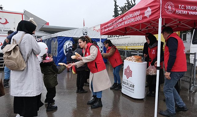 VAKIFLAR Genel Müdürlüğü tarafından, Hatay'ın Reyhanlı ilçesindeki Cilvegözü Sınır Kapısı'ndan ülkesine dönen Suriyelilere gümrük işlemleri devam ederken yiyecek ve içecek ikramında bulundu.Suriye'deki iç savaş sırasında Türkiye'ye sığınanlar, 61 yıllık Baas rejiminin devrilmesi sonrası ülkelerine dönmeye devam ediyor. Hatay'ın Reyhanlı ilçesindeki Cilvegözü Sınır Kapısı'na gelenler, gümrük işlemleri için sıra bekliyor. Hatay Vakıflar Bölge Müdürlüğü de sınır kapasında çocuklarıyla birlikte ülkelerine dönmeyi bekleyen Suriyelilere gümrük işlemleri sürerken yiyecek ve içecek ikram ediyor.