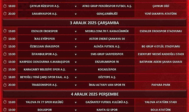 Ziraat Türkiye Kupası 4. eleme turunda oynanacak müsabakaların tarihleri belli oldu.Ziraat Türkiye Kupası 4. eleme turunda karşılaşmalar 2, 3 ve 4 Aralık'ta tek maç usulüne göre oynanacak. Tur atlayan takımlar gruplarda mücadele etmeye hak kazanacak. Türkiye Futbol Federasyonu, kupa müsabakalarının programını da internet sitesinden yaptığı açıklamayla duyurdu.Ziraat Türkiye Kupası 4. eleme turu programı şöyle:2 Aralık Salı13.00 Muşspor - Konyaspor15.30 Ankara Keçiörengücü - Kayserispor18.00 Çaykur Rizespor - Pendikspor20.30 Sakaryaspor - Gençlerbirliği3 Aralık Çarşamba13.00 Esenler Erokspor - Fatih Karagümrük13.30 Eyüpspor - Çankaya SK13.30 Sivasspor - Aliağa FK13.30 İstanbulspor - Sarıyer13.30 Karamanmaraşspor - Erzurumspor FK15.30 Karacabey Belediyespor - Kocaelispor18.00 Beyoğlu Yeni Çarşı - Göztepe20.30 Trabzonspor - Vanspor4 Aralık Perşembe13.00 Yalova FK 77 - Gaziantep FK13.30 Boluspor - Kahta 02 Spor13.30 Fethiyespor - Bandırmaspor13.30 Muğlaspor - Bodrum FK15.30 Iğdır FK - Orduspor18.00 Silifke Belediyespor - Antalyaspor20.30 Çorum FK - Corendon Alanyaspor